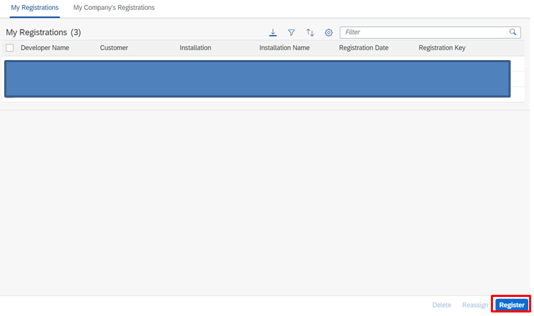 - Developers 등록, Select Installation(s) 입력 후 Register