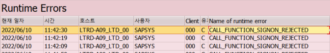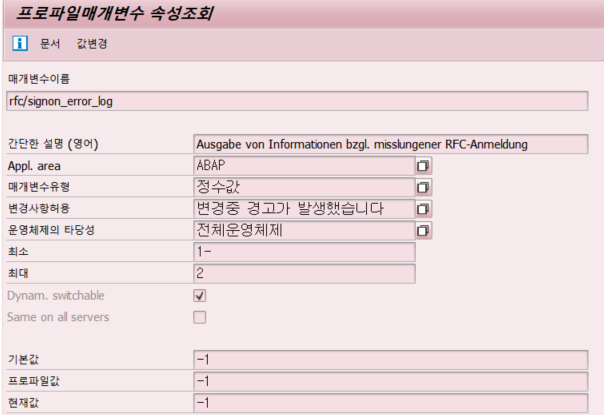 - rfc/signon_error_log: 로그온 오류 권한 수준을 낮춤 -1 to 2